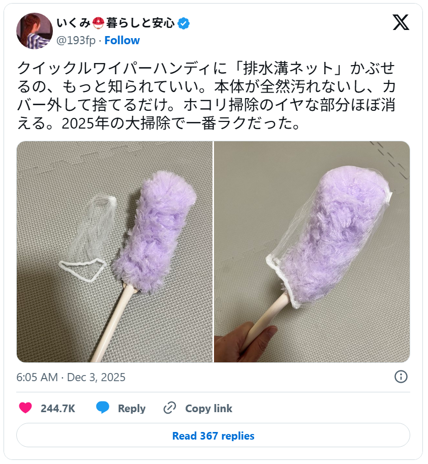 そんな中、SNSで紹介された大掃除の裏ワザが話題になり、なんと24万件以上の「いいね」を集めています。