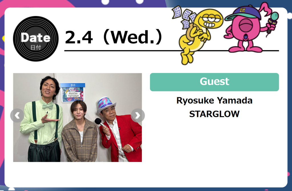 この日はRyosuke Yamada名義での初CDシングル「Blue Noise」収録曲「High High High」を地上波で初披露。