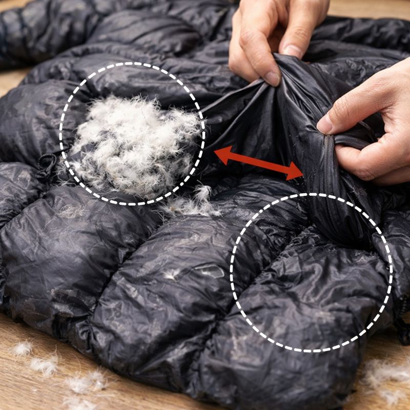 中の羽毛が均等に空気を含むことで保温性を保つ構造。